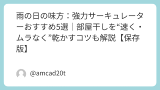 商品比較 雨の日の味方:強力サーキュレーターおすすめ5選|部屋干しを“速く・ムラなく”乾かすコツも解説【保存版】 部屋干しが乾かない、ニオイが気になる人へ。大風量×上下左右首振りの“強力サーキュレーター”おすすめ5台と、最速で乾かす配置・首振り・除湿の実践テクをわかりやすく解説。 2025.09.08 商品比較