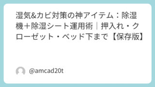 商品比較 湿気&カビ対策の神アイテム:除湿機+除湿シート運用術|押入れ・クローゼット・ベッド下まで【保存版】 「服や布団がジメジメする」「クローゼットのニオイが気になる」。湿気・カビ対策は、家全体の湿度を下げる“空間ケア(除湿機)”と、収納内部を守る“局所ケア(除湿シート)”の二段構えが最短ルートです。先に結論:除湿機でベースの湿度を下げる → 収... 2025.09.10 商品比較