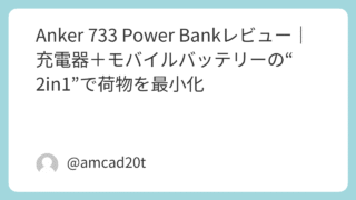 個人的おすすめ Anker 733 Power Bankレビュー|充電器+モバイルバッテリーの“2in1”で荷物を最小化 遠征バッグを軽くしたいなら、充電器とバッテリーの二刀流を1台にまとめるのが最も効率的。Anker 733 Power Bankは、GaNPrime 65WクラスのUSB-C充電器としても、10,000mAhのモバイルバッテリーとしても機能す... 2025.10.04 個人的おすすめ
