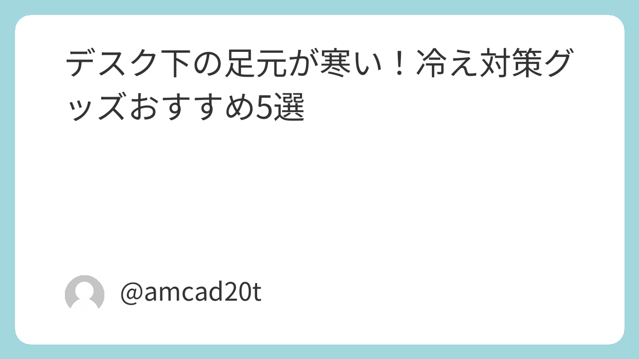 暖房は効いているのに足先だけ氷のよう…在宅あるあるです。コツは、「熱を作る」+「熱を逃がさない」の二段構え。デスクワークしやすいグッズを5つ厳選しました。