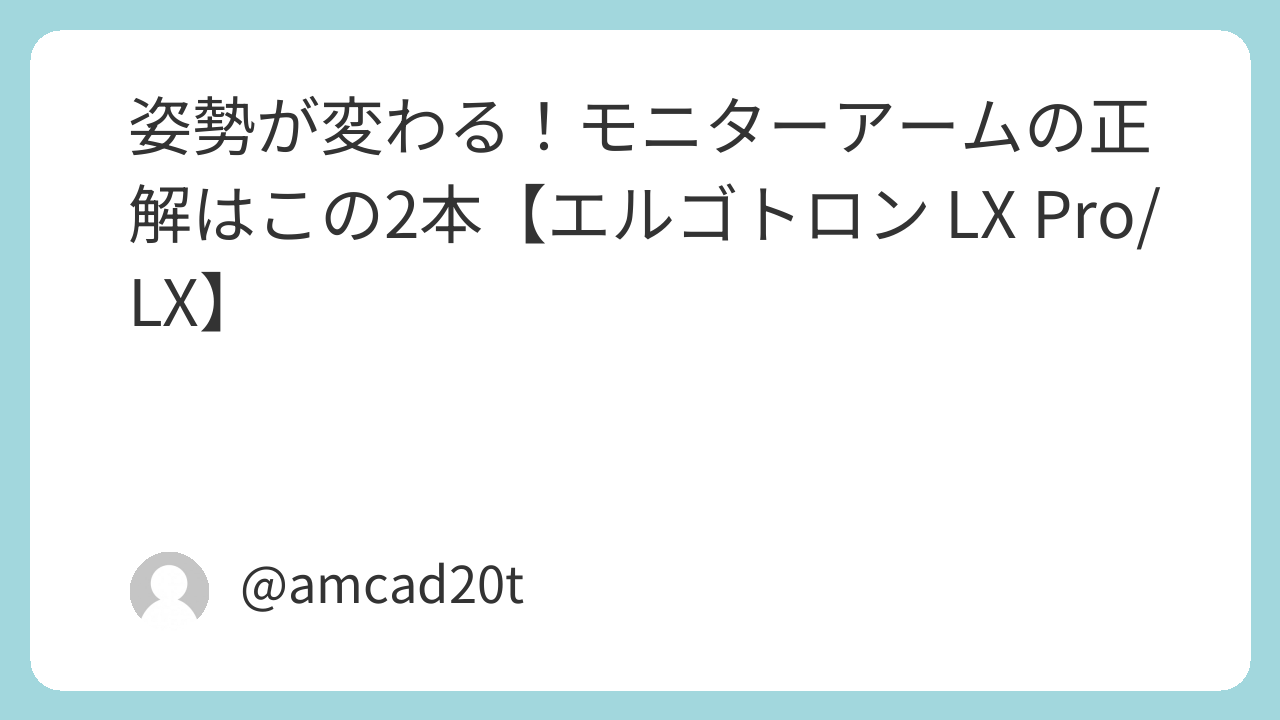 「ノートPCを見下ろす角度」から卒業すると、肩こりが減ります。選ぶべきは可動域が滑らかで、長く使える機構のアーム。ここではエルゴトロンLX Pro/LXに絞って解説。