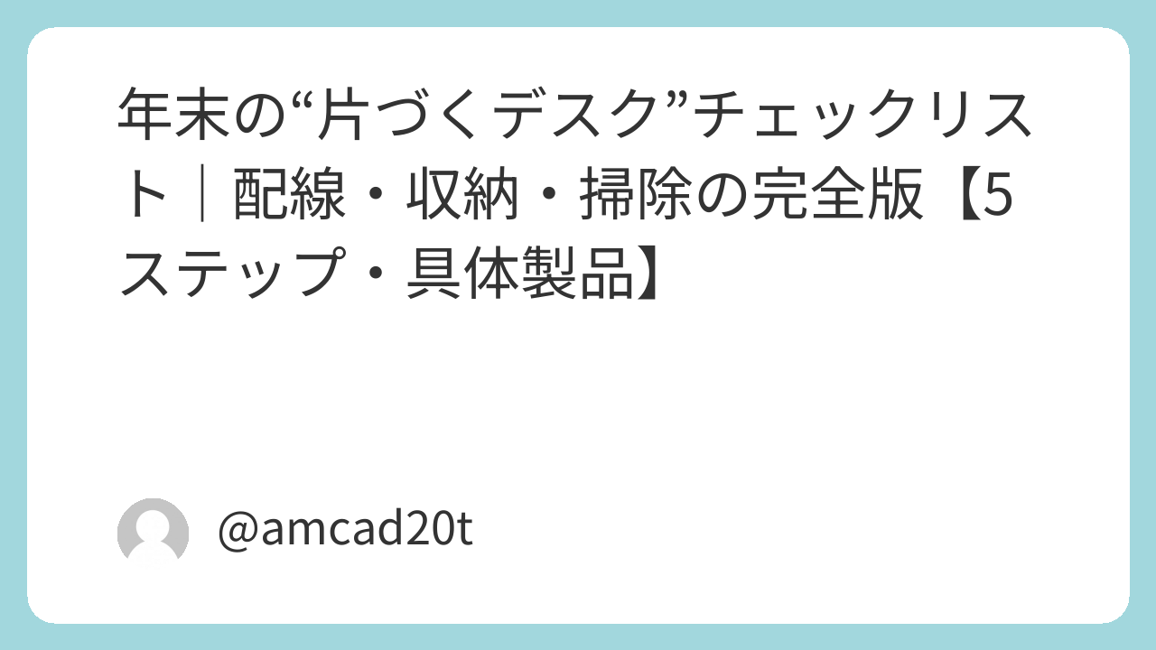 デスク配線の散らかりは集中力低下・清掃性の悪化・機器の熱こもりを招きます。年末の1回で “ケーブルの通り道を作る→束ねる→隠す→定位置化” をやっておけば、来年の仕事効率が上がり、掃除5分で維持できます。