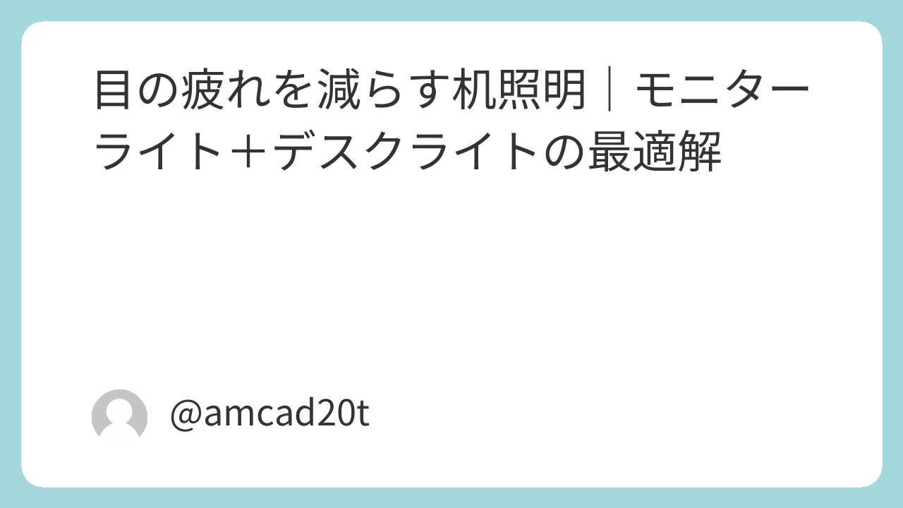 画面の映り込みと手元の暗さは、疲労と姿勢の悪化を招きます。解決策は、モニターには光を入れず手元だけ照らす“非対称配光”+角度自在の手元ライトの2本立て。